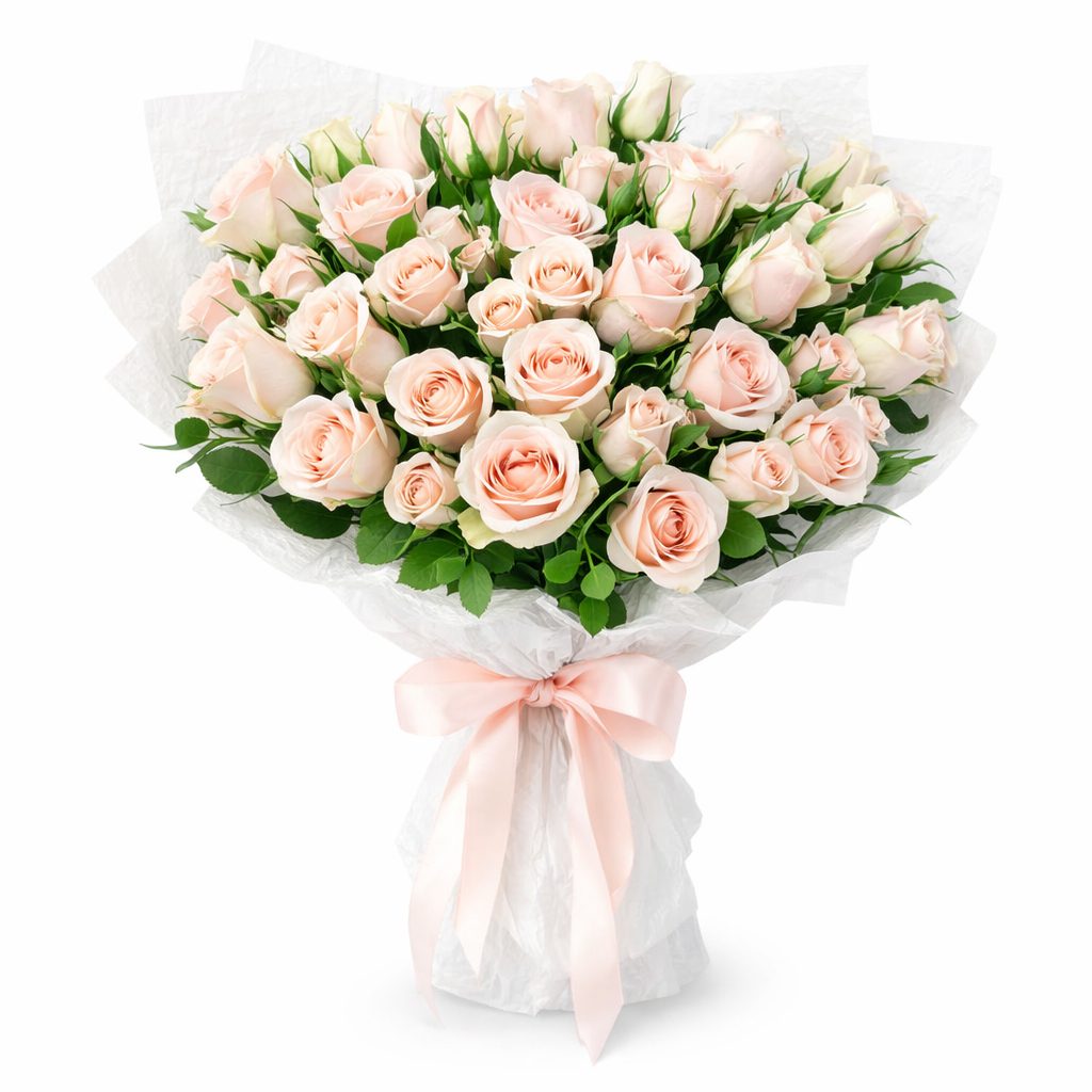 Роза кустовая кремовая, роза одноголовая. Упаковка (лента, пленка, крафт, сетка, пленка матовая)