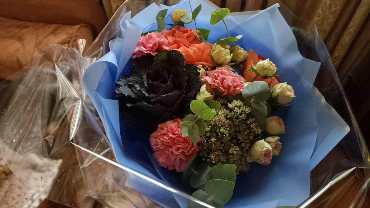 Роза одноголовая желтая, хризантема кустовая желтая, озотамнус. Упаковка (лента, пленка, крафт, сетка, пленка матовая)